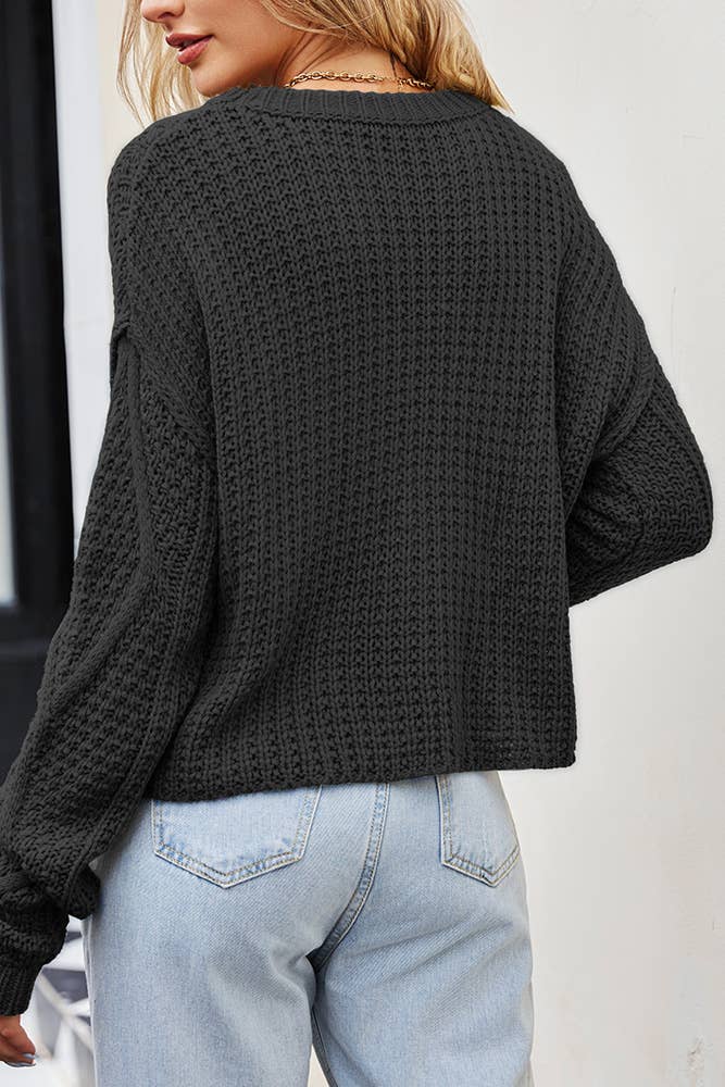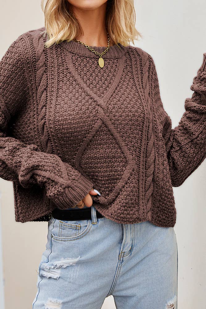 Add texture and charm to your wardrobe with this cable knit hollowed crop sweater. Crafted for comfort and style, it features a soft knit, subtle hollowed detailing, and a flattering cropped fit. Ideal for pairing with high-waisted jeans, skirts, or layering over dresses, this versatile piece is perfect for casual outings or cozy indoor days.